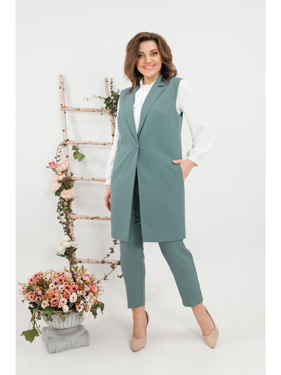 Жилет прямого силуэта с застёжкой на одну пуговицу. Перед с нагрудными выточками. Жилет с боковыми карманами.