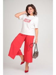 Брюки-кюлоты с элегантным запахом, свободной посадки, брючины широкие укороченные, чуть выше щиколотки. По переду молния, сзади по поясу вставлена резинка, запах фиксируется поясом на пряжки.