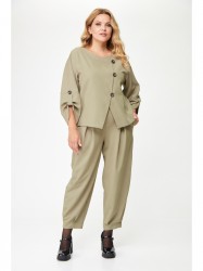 Жакет укороченный с цельнокроенным рукавом длиной 7/8 с патой, закрепленной пуговицей. Перед жакета с ассиметричной косой застежкой на навесные петли с пуговицами.