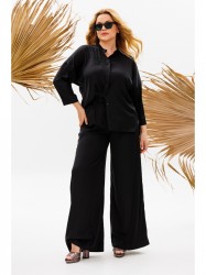 Брюки длинные свободного кроя на притачном поясе с резинкой. По переду в боковых швах функциональные карманы.