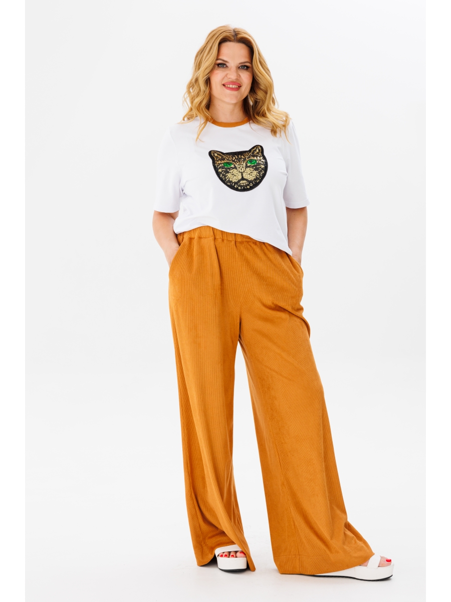 Брюки-палаццо идеально сидят на любой фигуре, подчеркивая все достоинства и скрывая недостатки. Брюки выполнены из прятной хлопковой ткани (штрукс). Изделие свободного кроя, длинные, на притачном поясе с резинкой. По переду два кармана в боковых швах.