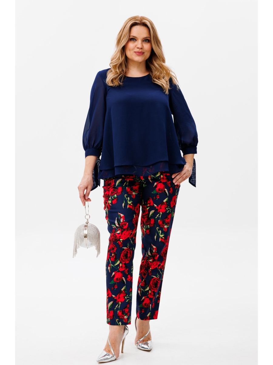 Нарядный женский комплект из шифоновой блузки и брюк идеально подойдёт для любых торжеств.