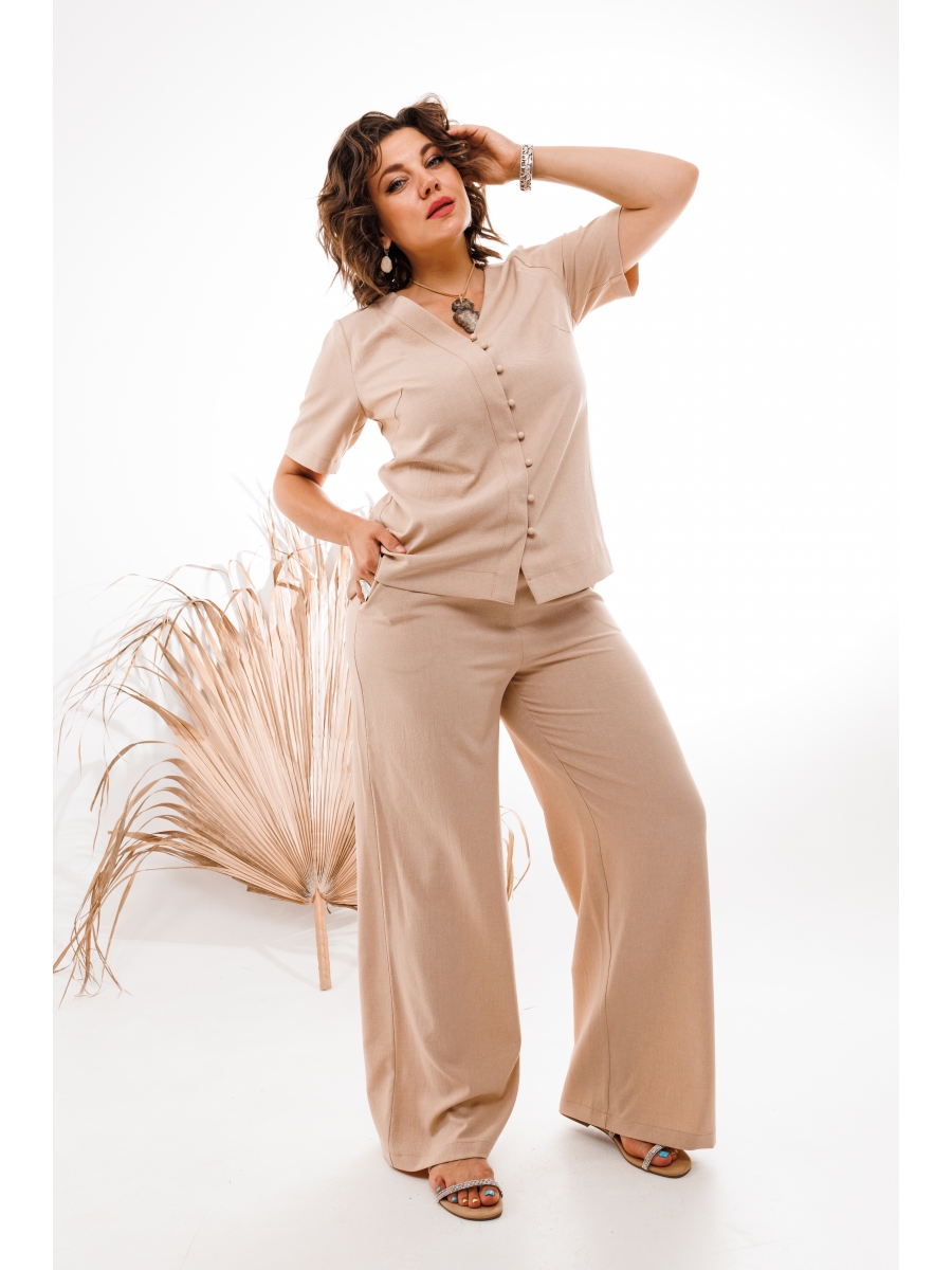 Блуза украшена красивой россыпью пуговиц, придающих ей изысканный вид. Цвета костюма подобраны таким образом, чтобы создать гармоничное сочетание и подчеркнуть вашу индивидуальность.