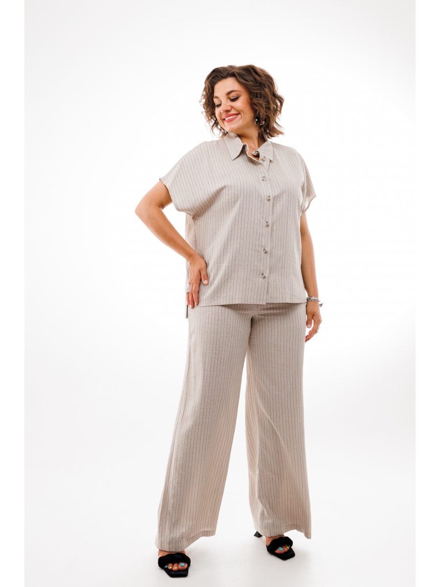 Воплощение стиля и комфорта: льняной костюм с брюками и рубашкой с коротким рукавом от Анелли!