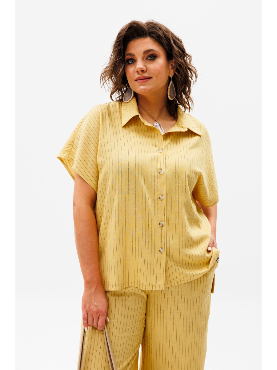 Воплощение стиля и комфорта: льняной костюм с брюками и рубашкой с коротким рукавом от Анелли!