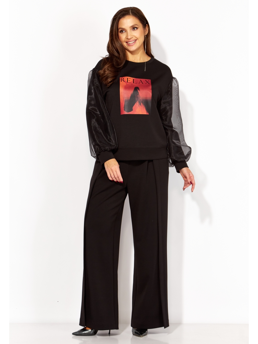 Комплект женский, 2-х предметный, состоящий из джемпера и брюк, выполнен из трикотажного полотна "TENSEL" с отделкой органзой.