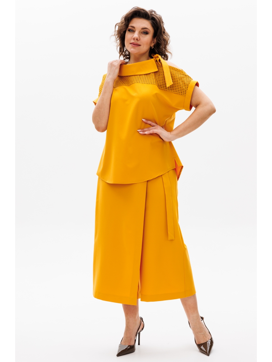Комплект женский брючный состоит из двух предметов: блузы и брюк-кюлот, станет незаменимым в весенне-летний период.