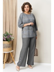 Комплект-двойка из текстильной ткани: комбинированная блуза и брюки свободного силуэта. Рукав блузы на цельнокроеной основе.