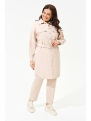 Рубашка удлиненная свободного силуэта с функциональными накладными карманами по переду и в боковых швах, рукава со спущенной линией плеча с манжетами, воротник рубашечный, застежка-планка на петли и пуговицы.
