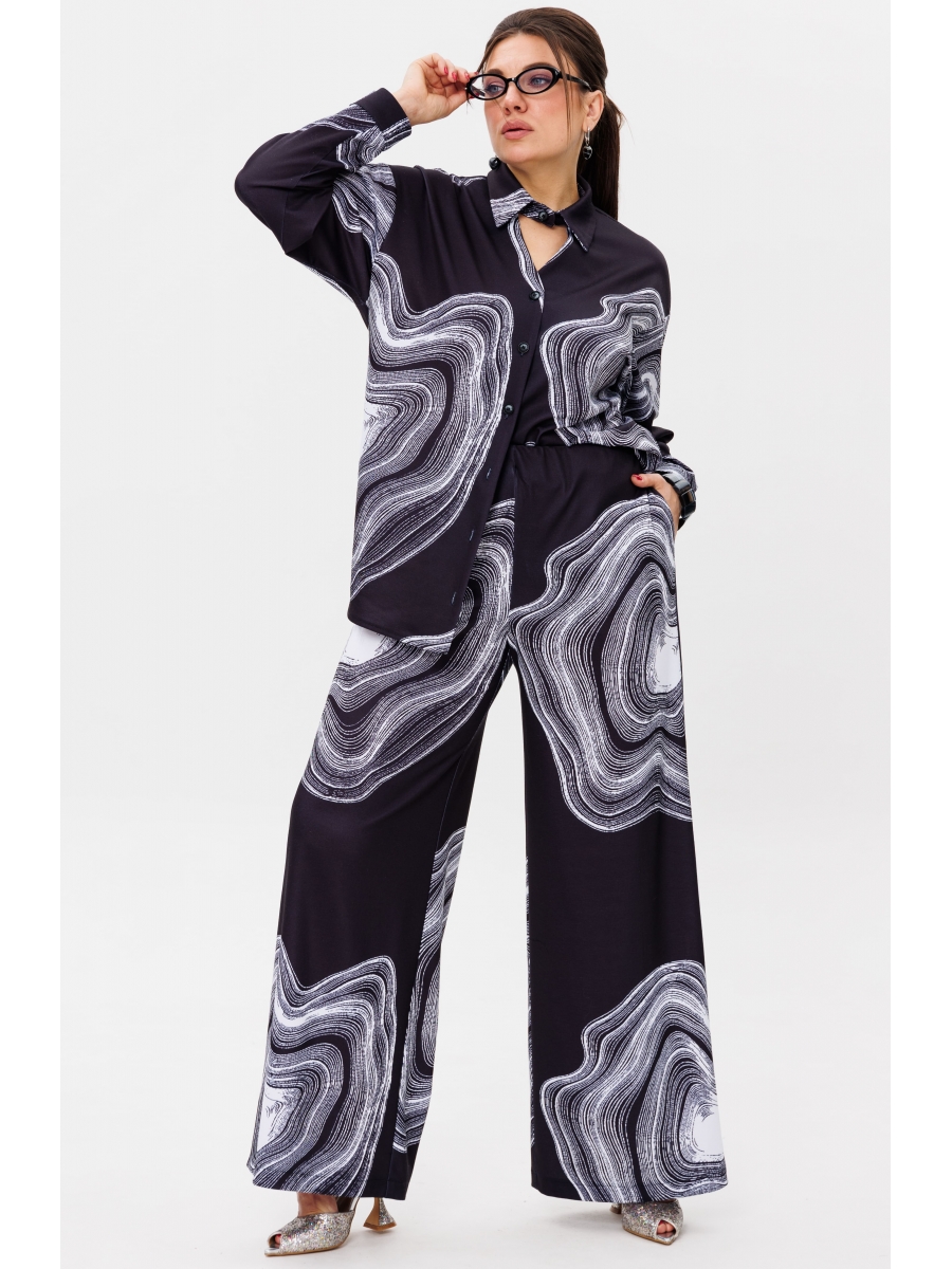 Этот костюм можно носить как вместе, так и по отдельности, комбинируя с другими элементами вашего гардероба. Необычная и стильная принтованная ткань привлекает внимание и делает вас центром притяжения в любом окружении.