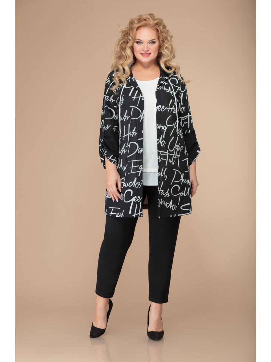 Костюм женский трехпредметный, состоящий из кардигана, топа и брюк.