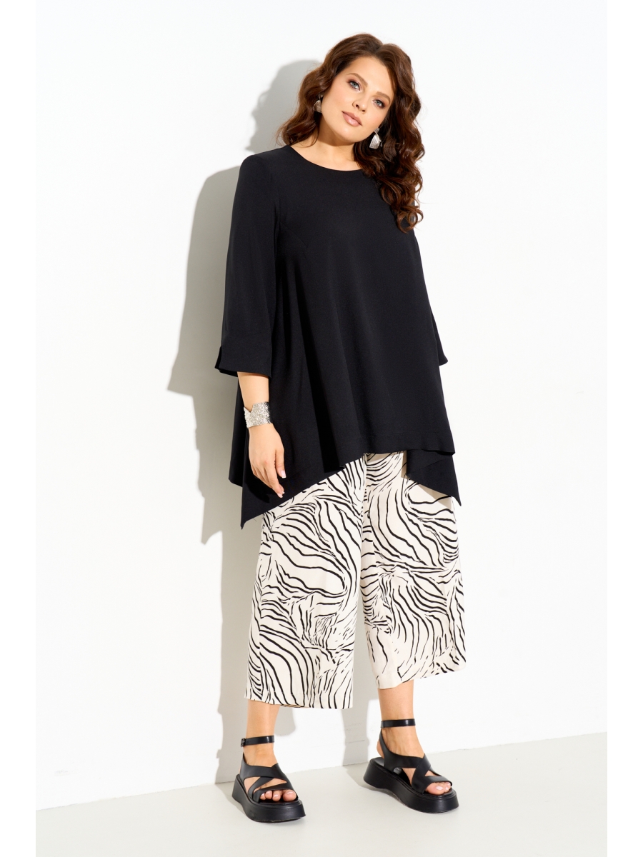 Костюм женский свободного силуэта, состоящий из туники и брюк, выполнен из натуральной легкой летней ткани.