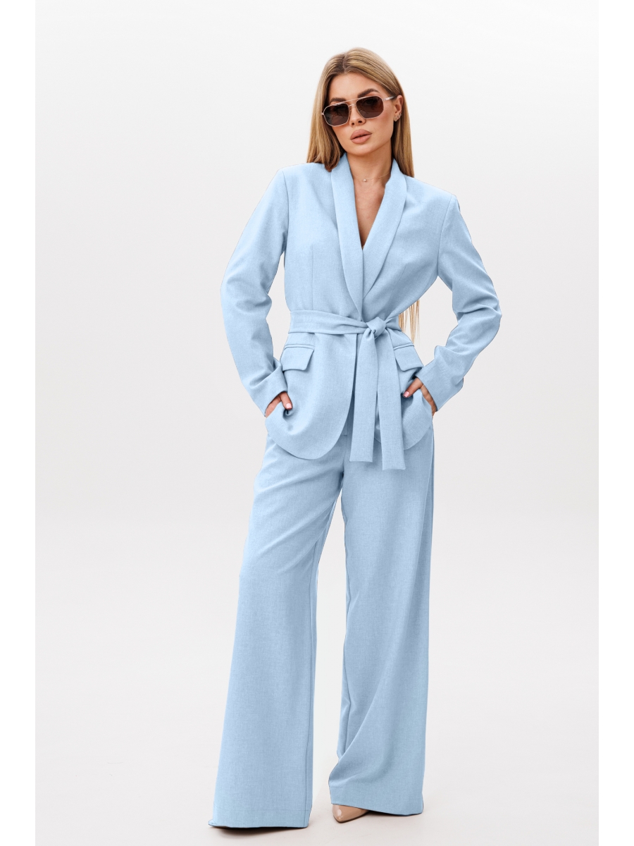 Жакет прилегающего силуэта с воротником "Шаль". По переду действующие прорезные карманы с клапаном. Рукав втачной двухшовный. По низу рукава отлетная шлица. Жакет на подкладке с поясом из основной ткани. Застежка на петлю пуговицу.