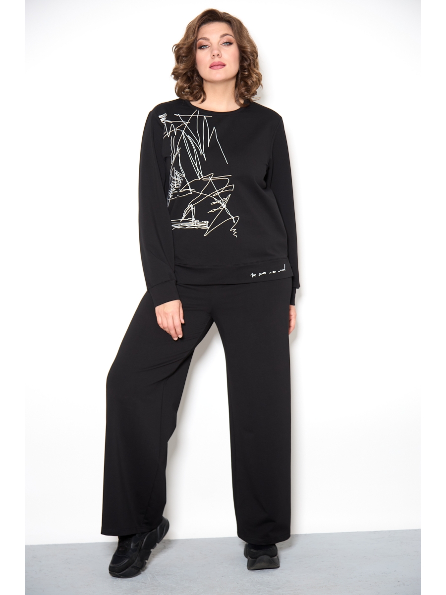 Оформить заказ →Костюм двухпредментный спортивного стиля, состоящий из свитшота и брюк. Свитшот с длинным втачным рукавом внизу на манжете с карманами. По низу на планке и по переду печать. Брюки прямого силуэта.