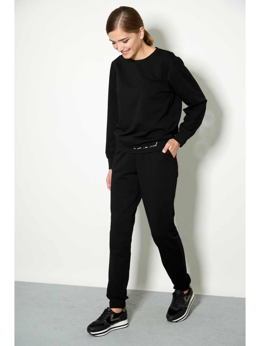 Молодежный костюм двухпредментный спортивного стиля, состоящий из свитшота и брюк.
