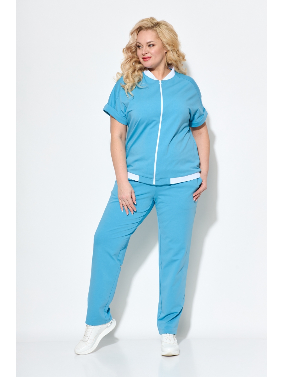 Свитшот с коротким спущенным рукавом, с довязами-резинкой по горловине и по низу. Рукав с отворотом, свитшот с застежкой-молнией по переду.