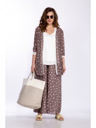 Комплект женский трехпредметный, состоит из кардигана, блузона и кюлот. Кардиган без застежки, рукав втачной 3/4 с притачным довязом.