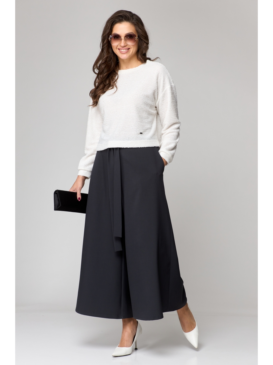 Интересный, удобный, стильный женский комплект, состоит из юбки-брюк и трикотажного джемпера. Джемпер прямого силуэта, со спущенной проймой и манжетой.