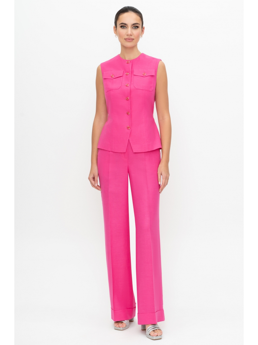 Костюм женский, двухпредметный, состоит из жилета полуприлегающего силуэта, на подкладке и прямых брюк. Костюм предназначен для повседневной носки в летний период.