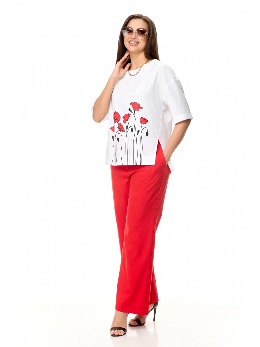 Очень стильный, элегантный, модный женский комплект из льна-вишера, состоит их брюк палаццо и блузона прямого силуэта, с интересным принтом в цвет брюк, со спущенной проймой, что придает свободу движению и комфорта при носке. Сзади двойная кокетка.