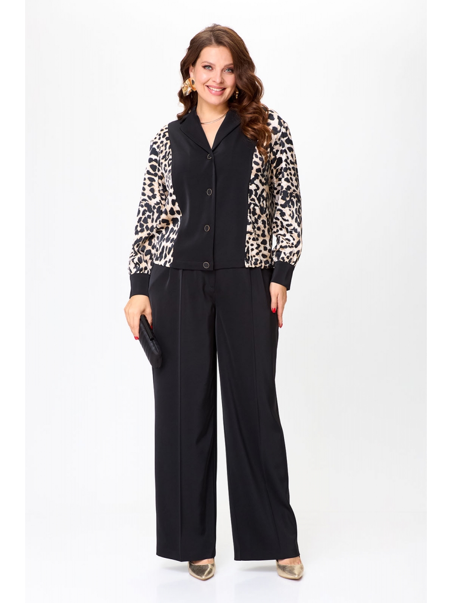 Брючный костюм 2904 черный с бежевым, LadyStyleClassic – купить с доставкой в Новосибирске на novosibirsk.belpodium.ru