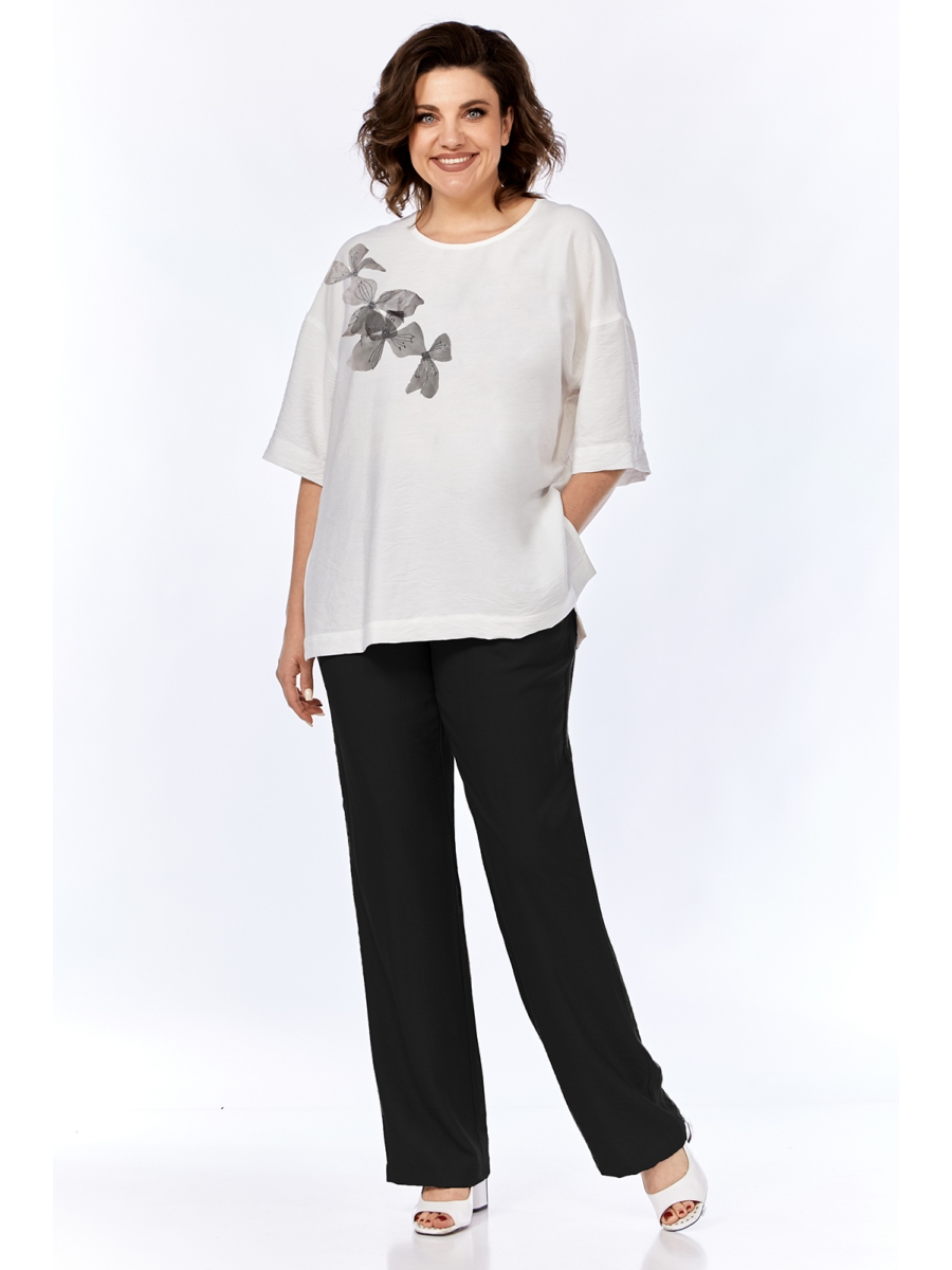 Комплект брючный изготовлен из легкой вискозной ткани с эффектом мятости.