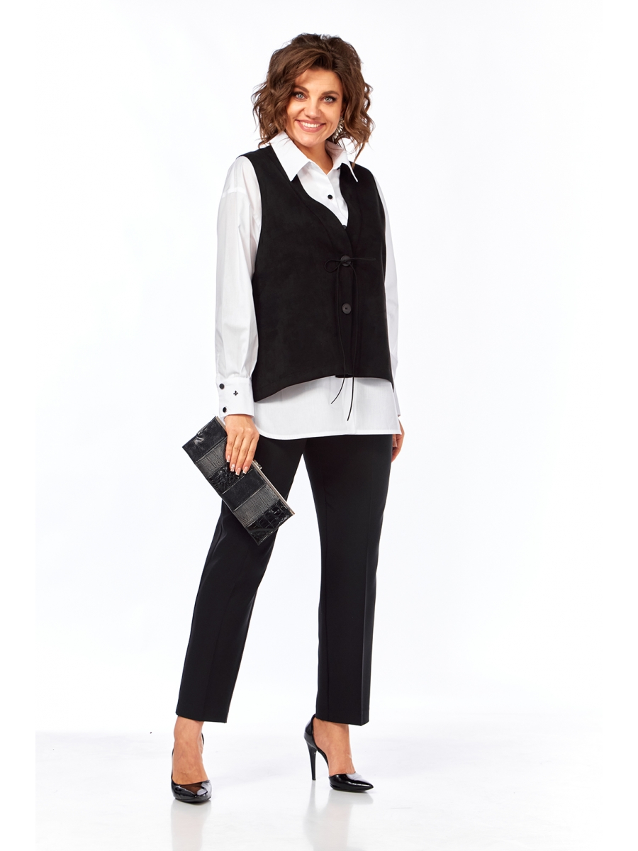 Комплект женский брючный 3-х предметный, состоит из жилета, блузки и брюк.