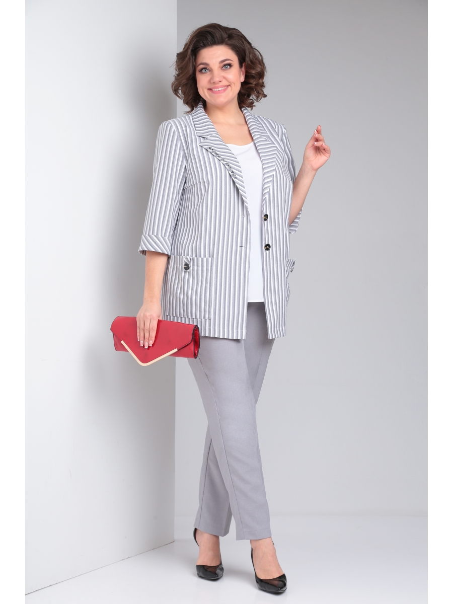 Комплект женский трёхпредметный, состоящий из жакета, брюк и блузы, отлично подойдет как для работы в офисе, так и для свободного времени.