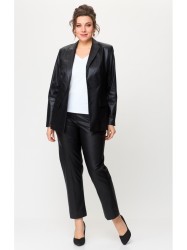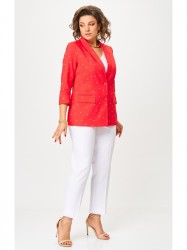 Жакет женский удлиненный, полуприлегающего силуэта с центральной бортовой застежкой на пуговицы до линии перегиба лацкана. Спереди рельефные швы от плечевого шва, отрезной бочок и карман с клапаном. Спинка с рельефами от плечевого шва. Рукав втачной, двухшовный, 3/4, с небольшим разрезом в локтевом шве. Воротник пиджачного типа. Перед жакета на подкладке.