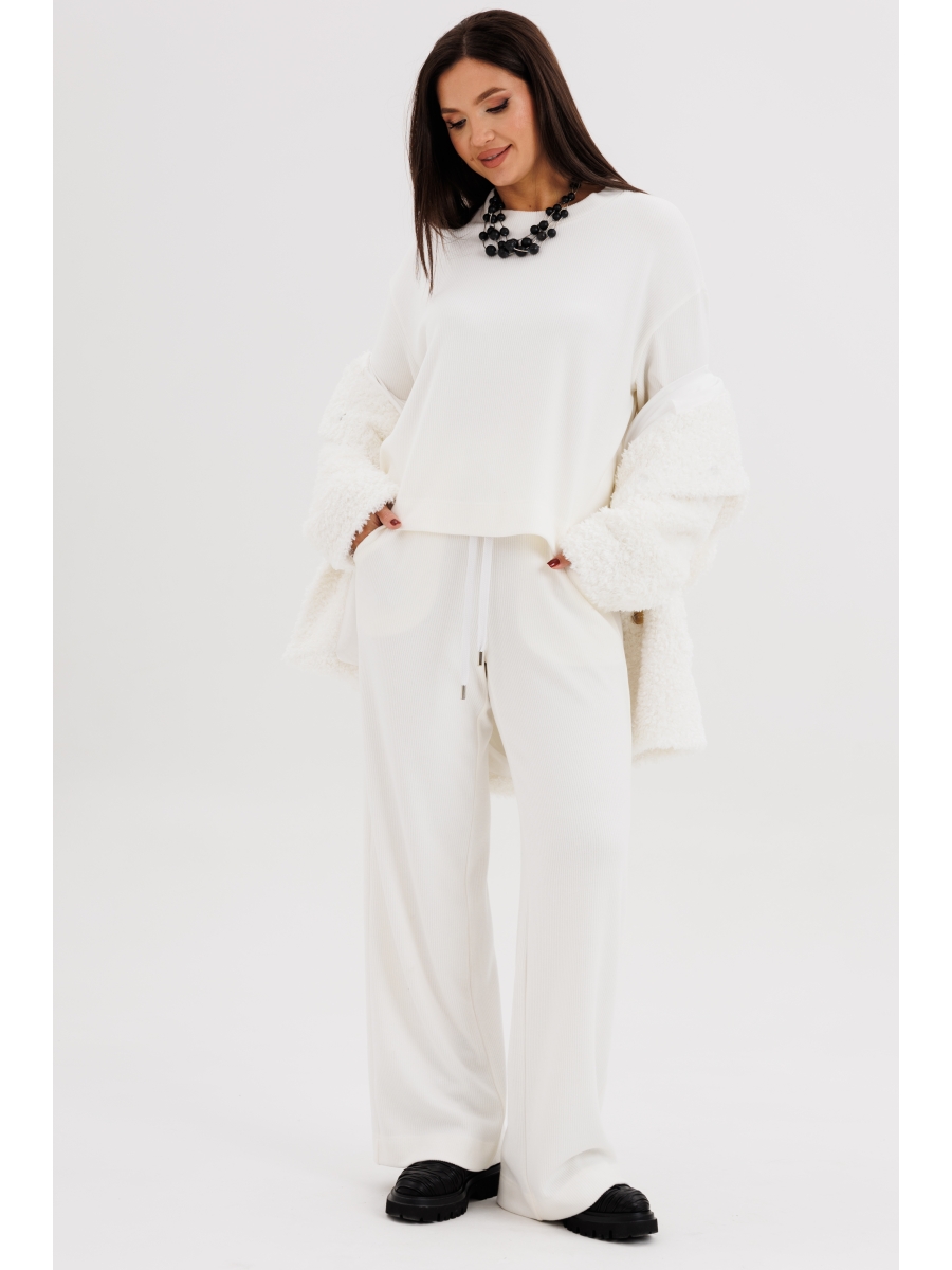 Такой вариант неформального костюма можно отметить отдельно-это настоящий шик, который в любой обстановке смотрится по-особенному. Невероятное ощущение расслабленности и комфорта обеспечивает удобный покрой и тактильно уютный трикотаж с эффектом вельвета.