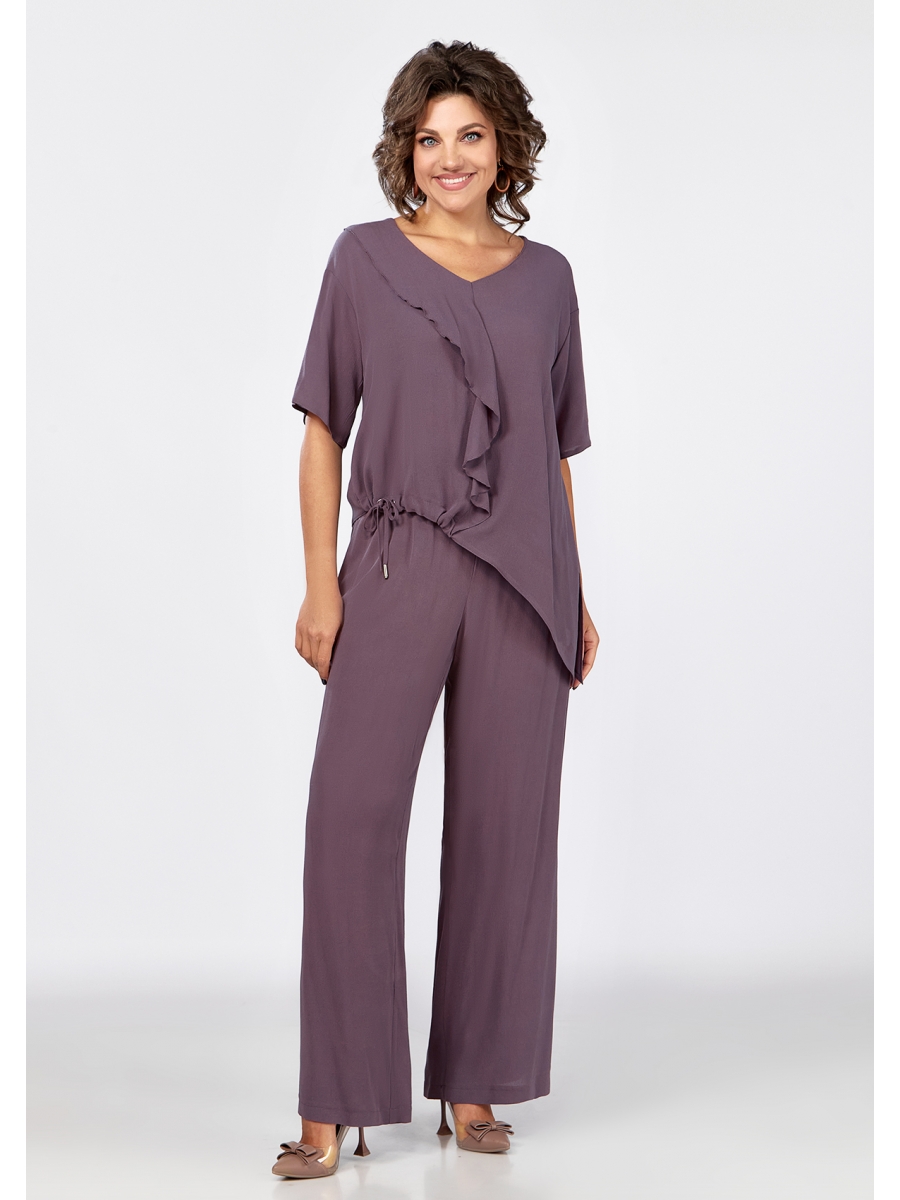 Брючный комплект свободного покроя, выполнен из летней ткани «марлевка», состоит из блузки и брюк.