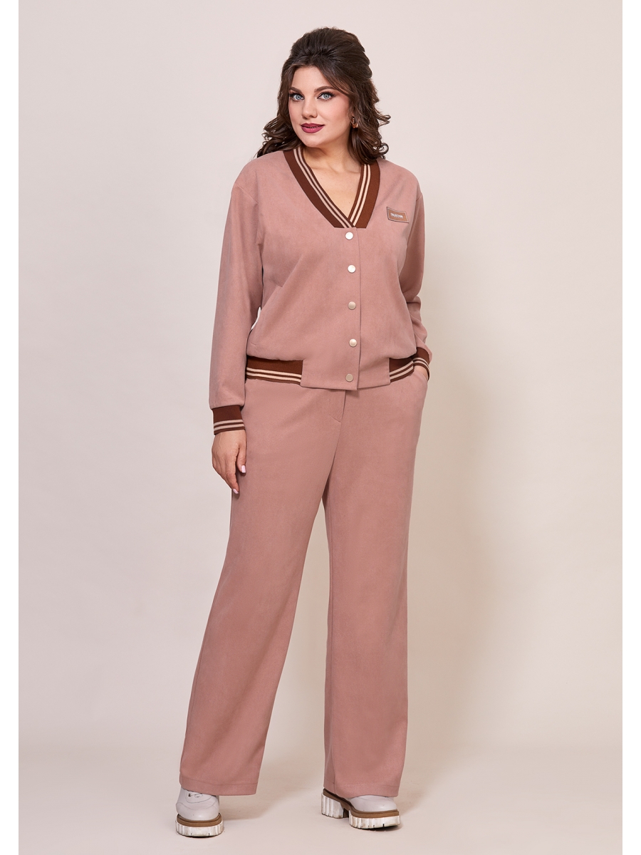 Женский комплект, состоит из бомбера и брюк, свободного покроя, выполнен из трикотажного полотна с эффектом «штрукс».
