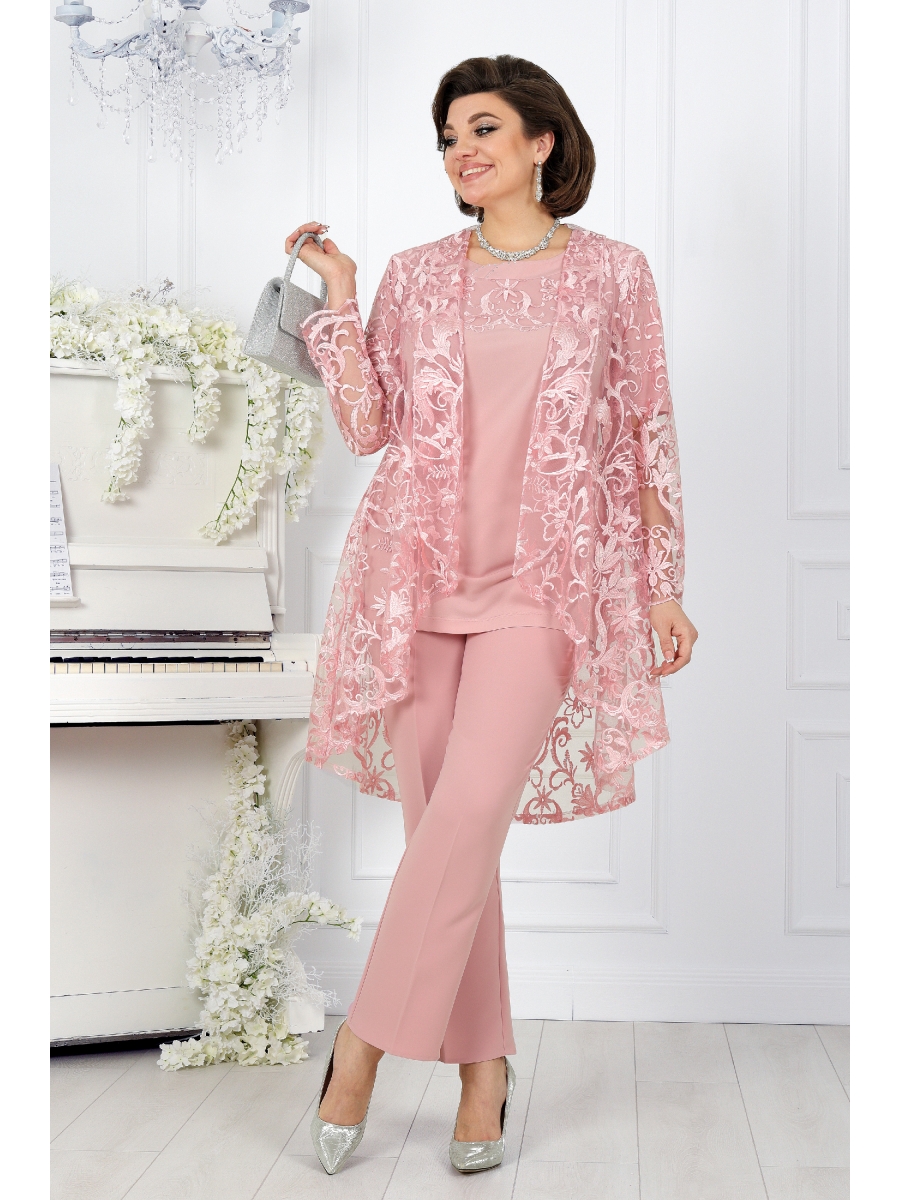 Оформить заказ →Представляем вам изысканный трех предметный костюм, который станет ярким украшением вашего гардероба на любом торжественном событии, будь то вечеринка, корпоратив, свадебное торжество или юбилей. Комплект брючный, 3-х предметный, состоящий из кардигана, блузки и брюк. Кардиган выполнен из гипюра, силуэта "трапеция". Длина асимметричная: по переду короче, длиннее к середине спинки. Длина кардигана по посередине спинки 108,0 см. Линия горловины и борта оформлены отложным воротником-шалью. Рукава втачные, одношовные, длиной 59 см, по низу оформлены фестонами. Блузка выполнена из трикотажного полотна "масло", полуприлегающего силуэта, длиной по середине спинки 73.5 см. Перед с нагрудными вытачками, идущими от пройм, с настрочной кокеткой из гипюра, с фигурным низом. Спинка с талиевыми вытачками. Вырез горловины спинки и переда округлый, по переду с подрезной планкой, декорированной стразами. Рукава втачные, одношовные, длиной 27 см.