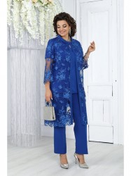 Комплект брючный 3-х предметный, состоящий из кардигана, выполненного из гипюра, джемпера, выполненного из трикотажного полотна «масло» и брюк, выполненных из костюмно-плательной ткани.