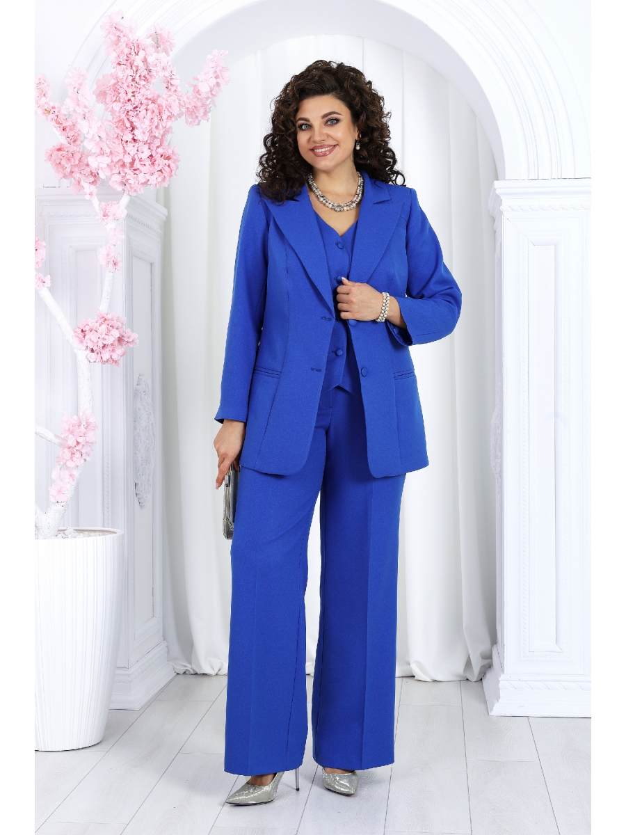 Комплект брючный 3-х предметный, состоящий из жакета, жилета и брюк.