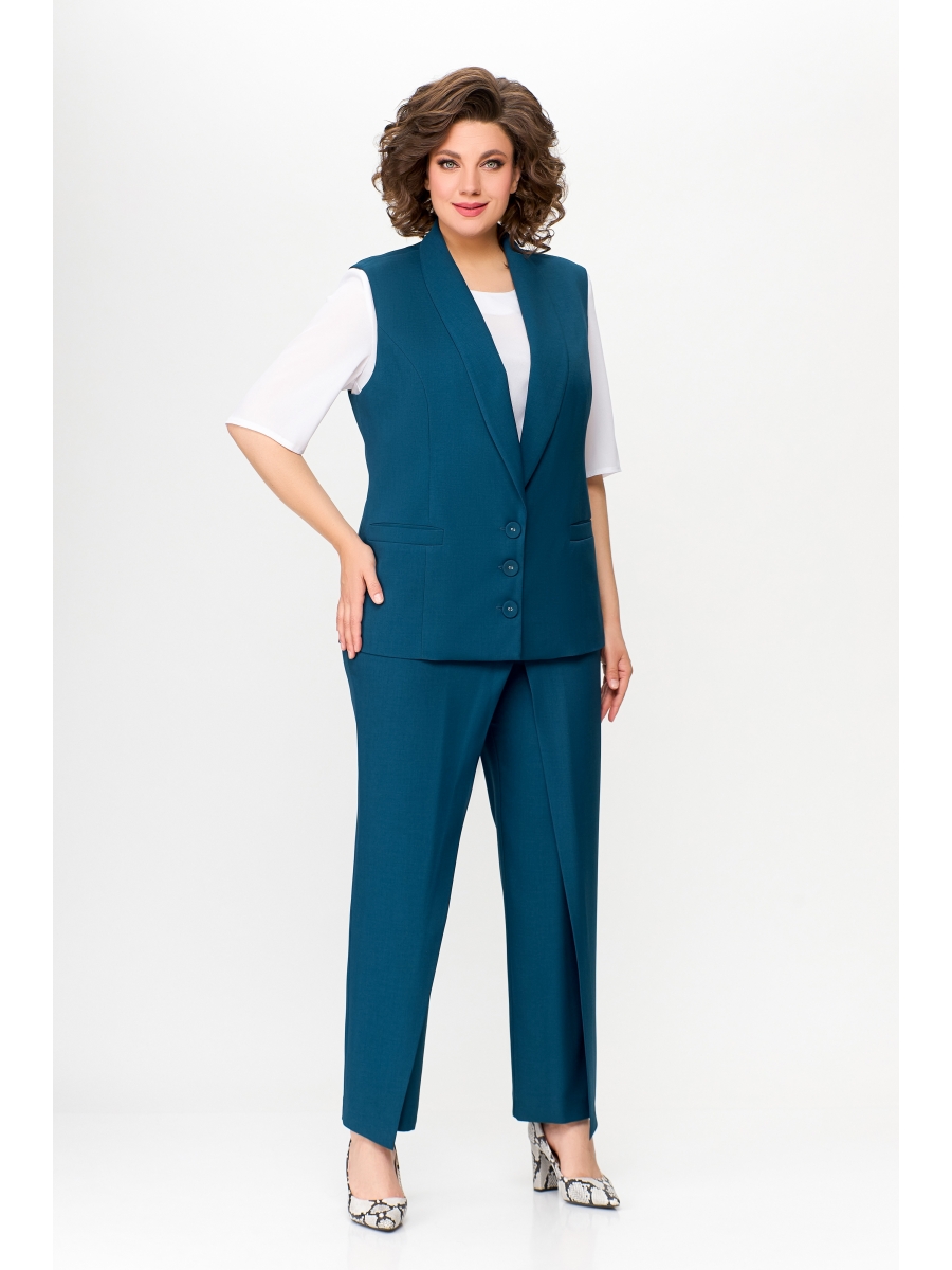 Жилет и брюки выполнены из плательно-костюмной ткани. Жилет на подкладке. Перед жилета с