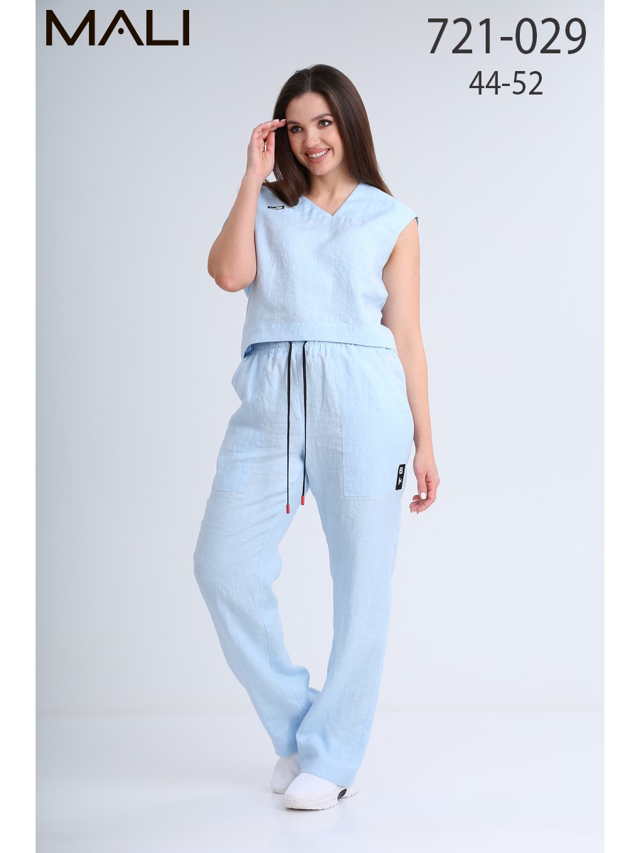 Комплект льняной от MALI в спортивном стиле, состоящий из блузы и брюк.