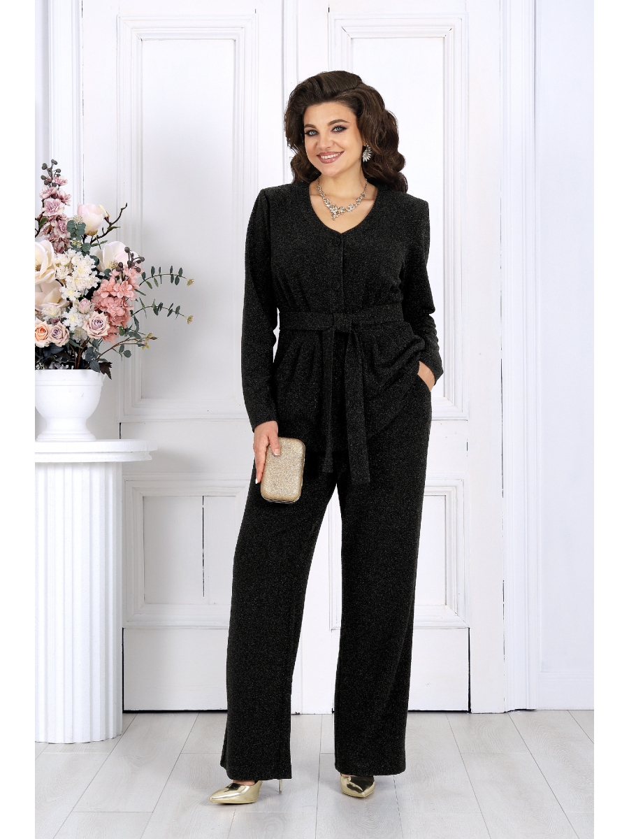 Элегантный брючный комплект – идеальный выбор для праздника, вечера в ресторане или важного мероприятия. Жакет с выразительным V-образным вырезом и аккуратными складками по линии талии подчёркивает женственный силуэт, а сияющая ткань с люрексом придаёт образу динамику и мягкость, создавая гармоничное сочетание классики и современности.