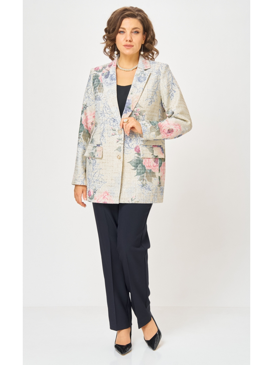 Брючный костюм 762+596 молочный твид, синий, БелЭльСтиль – купить с доставкой в Новосибирске на novosibirsk.belpodium.ru