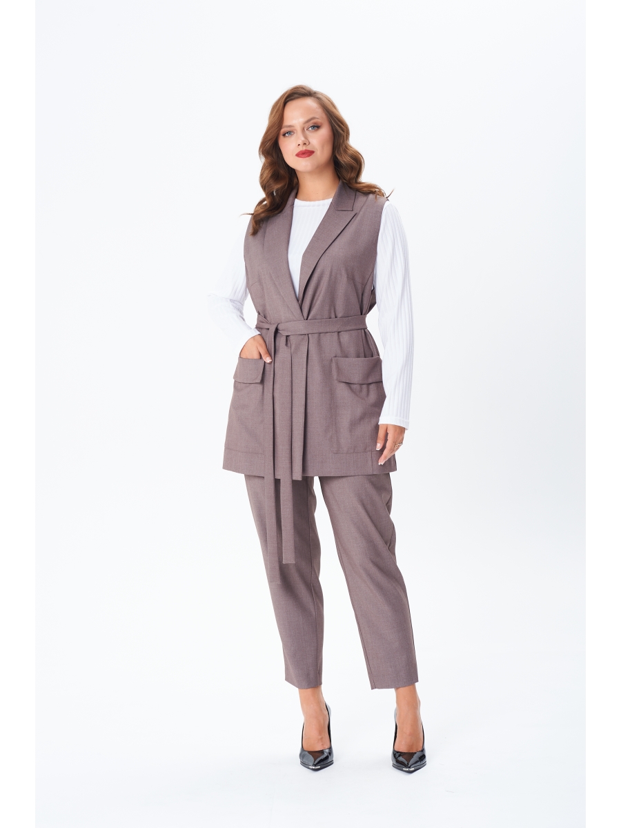 Комплект женский тройка состоит из жилета и брюк, выполнены из плательно-костюмной ткани, и лонгслива из трикотажного полотна «лапша».
