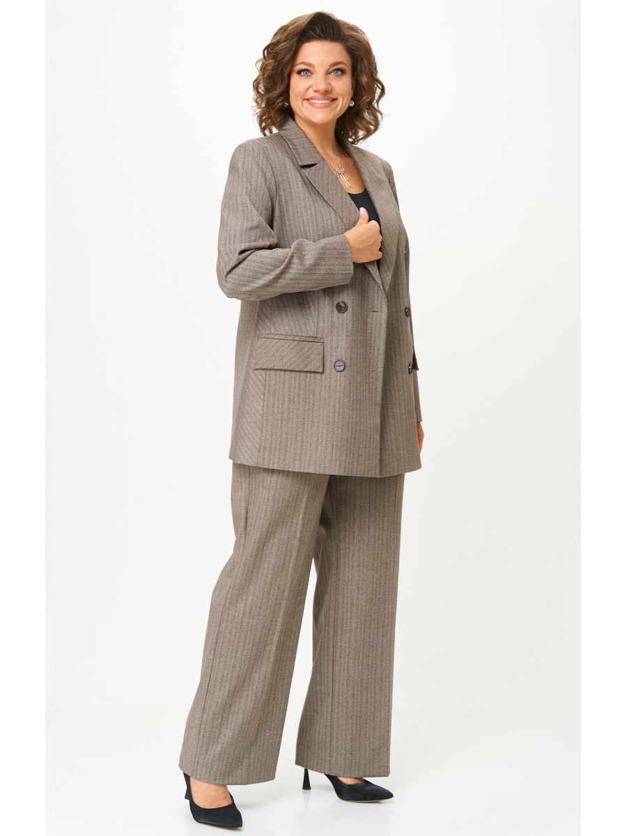 Женский комплект 2-х предметный, состоит из жакета и брюк из костюмной ткани.