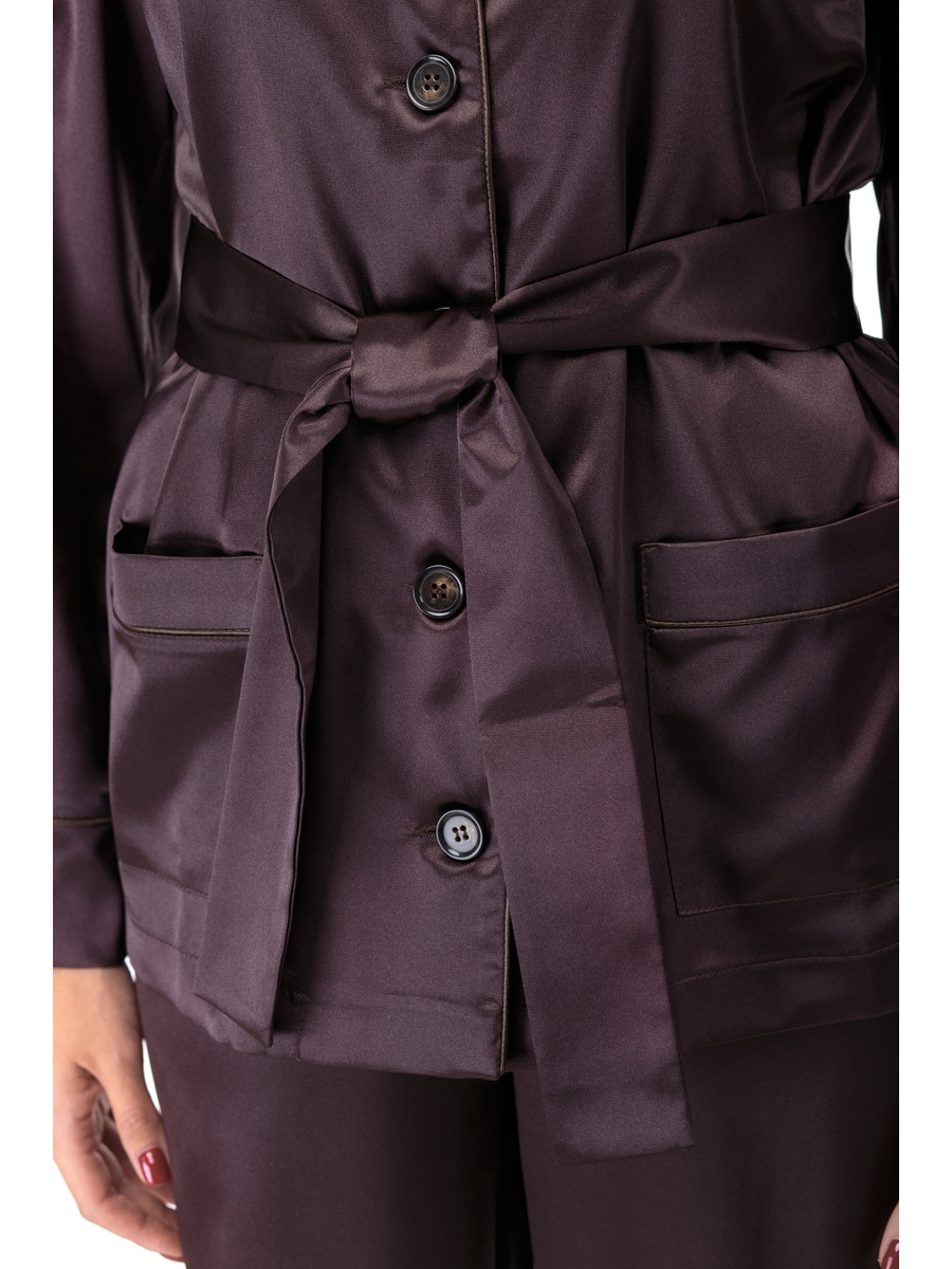 Брючный костюм выполнен из нескольких видов ткани: хлопка, сатина, шелка в разных цветовых решениях и призван создать ощущение комфорта и роскоши одновременно.