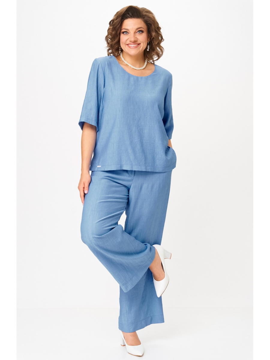 В блузе по переду есть нагрудные вытачки, по боковым швам разрезы, рукав 3/4.