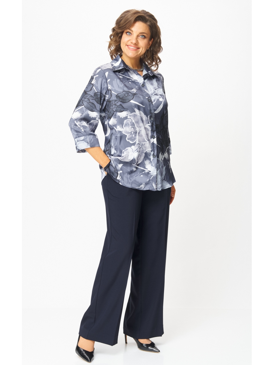 Брючный костюм 877+601 синий принт+синий, БелЭльСтиль – купить с доставкой в Новосибирске на novosibirsk.belpodium.ru