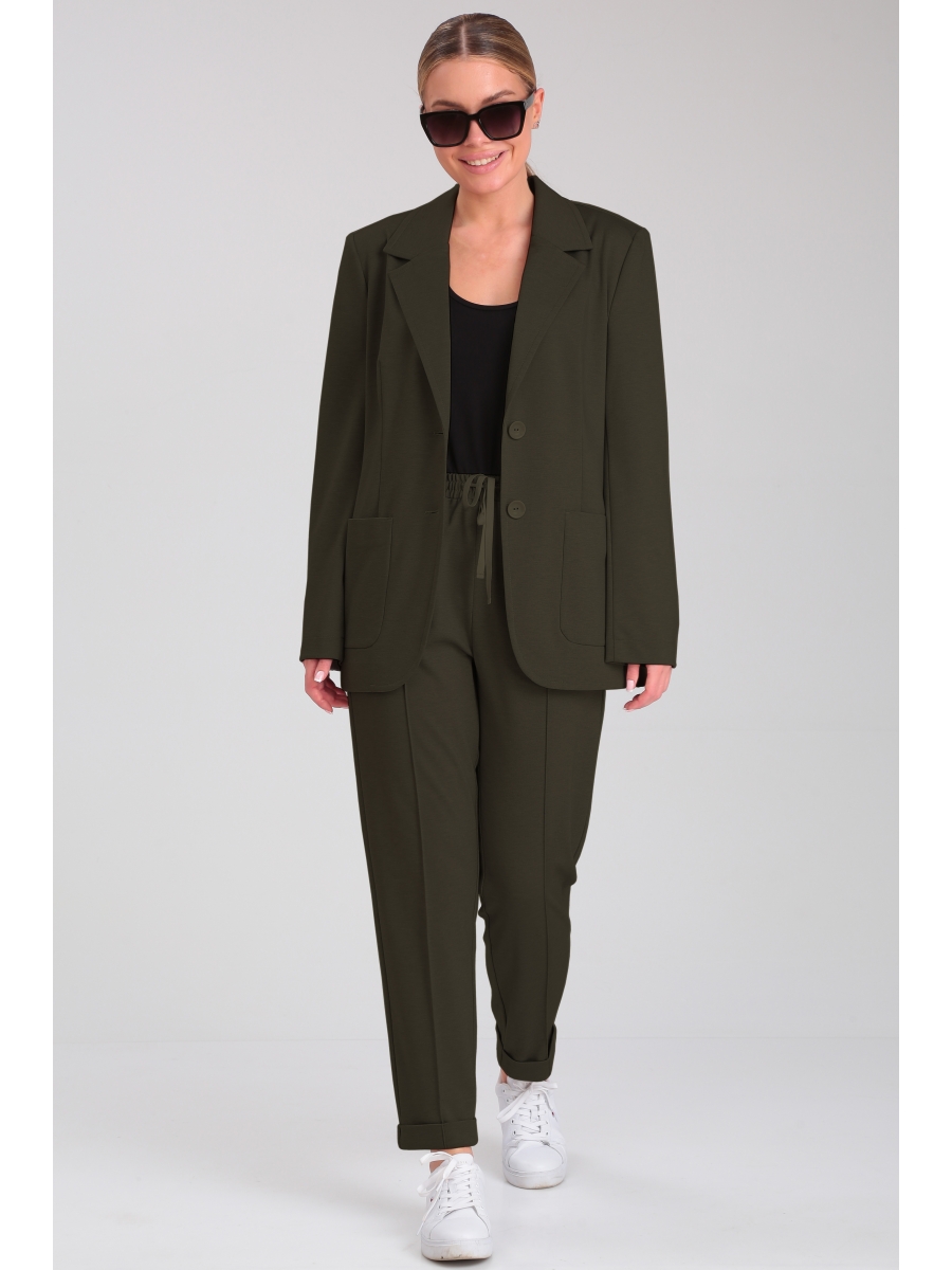 Комфортный брючный комплект из трикотажного полотна, состоящий из жакета и брюк. Жакет от комплекта будет отлично сочетаться с любыми джинсами, брюками или юбкой, а брюки - с толстовкой или джемпером. Комплект будет идеально смотреться и с кроссовками, и с классическими туфлями. Подойдет для повседневной носки, работы, офиса или школы.