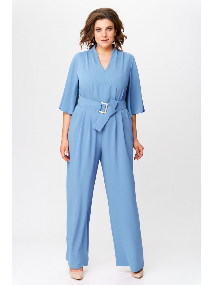 Комбинезон отрезной по линии талии, по лифу и брюкам заложены складки. Горловина «V» образная, застежка на тесьму-молния в среднем шве спинки. Рукава втачные расширенные к низу, длина ¾.