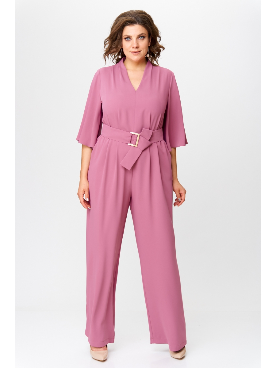 Комбинезон отрезной по линии талии, по лифу и брюкам заложены складки. Горловина «V» образная, застежка на тесьму-молния в среднем шве спинки. Рукава втачные расширенные к низу, длина ¾.