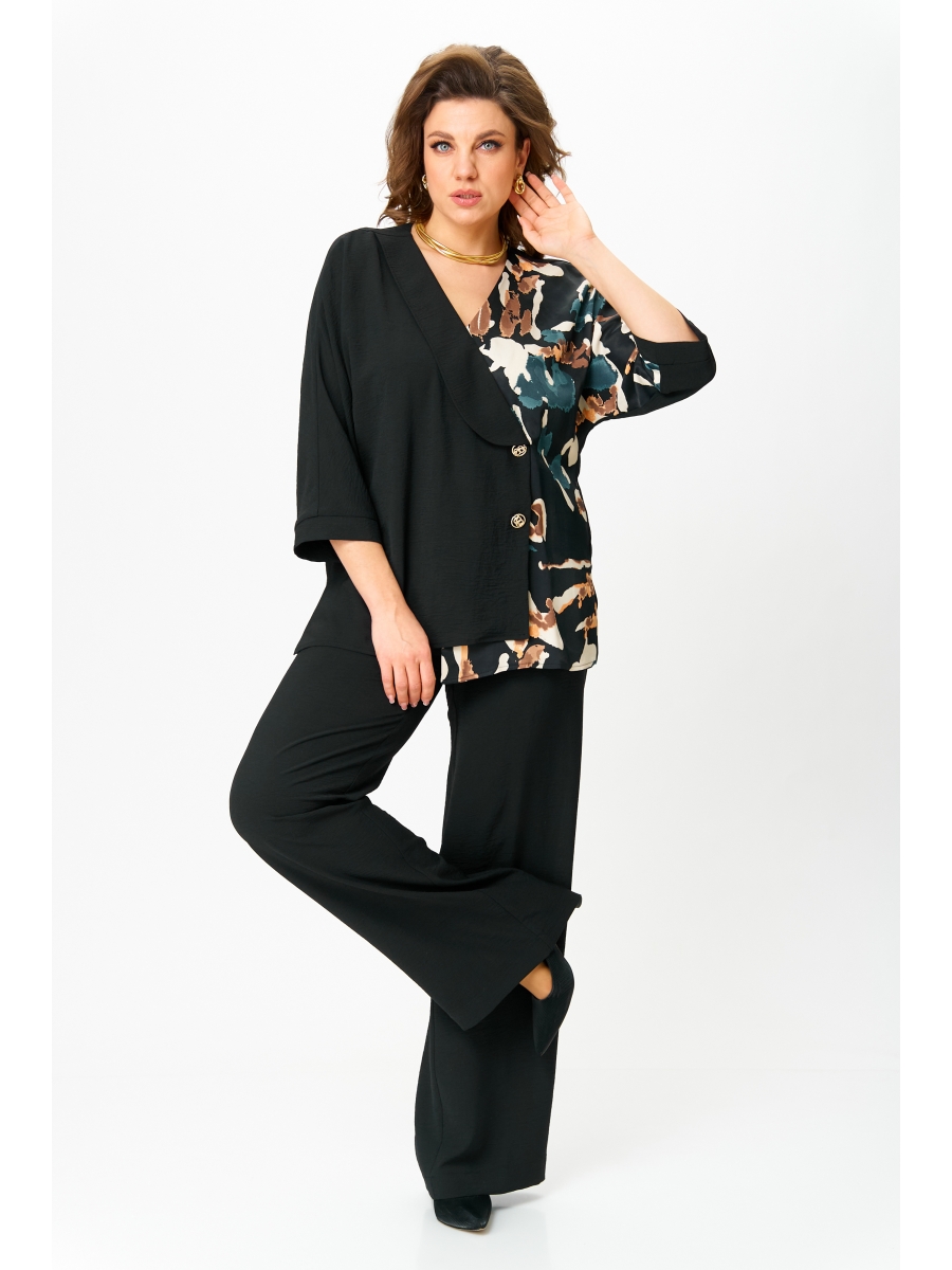 Стильный женский комплект выполнен из двух видов ткани атласа и «жатки» состоит из блузона и брюк.