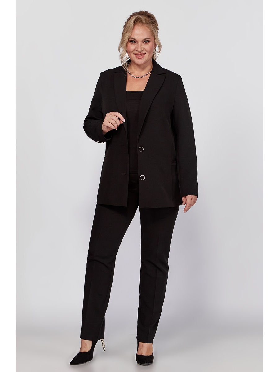 Классический женский брючный костюм - это комплект, состоящий из брюк и пиджака. Он идеально подходит для делового и офисного гардероба, но также может быть использован и для повседневной носки или торжественного события. Брючный костюм женский идеально сочетается как с туфлями, так и с кроссовками. Такая стильная вещь незаменима в повседневном базовом гардеробе современной модницы. Удлиненный жакет без подкладки  с лацканами и воротником полуприталенного кроя имеет традиционную застежку на две пуговицы. На полочке обработаны функциональные прорезные карманы с листочкой. Брюки прямые, слегка зауженные книзу. В боковом шве выполнен карман-хулиган. На передней и задней половинке – вытачки. Верхний срез обработан притачным поясом, а в области боковых швов собран на эластичную тесьму. Модель с гульфиком и застежкой на пуговицу и тесьму-молнию. Посадка высокая. Оригинальный современный костюм подарит комфорт женщинам и девушкам всех возрастов.