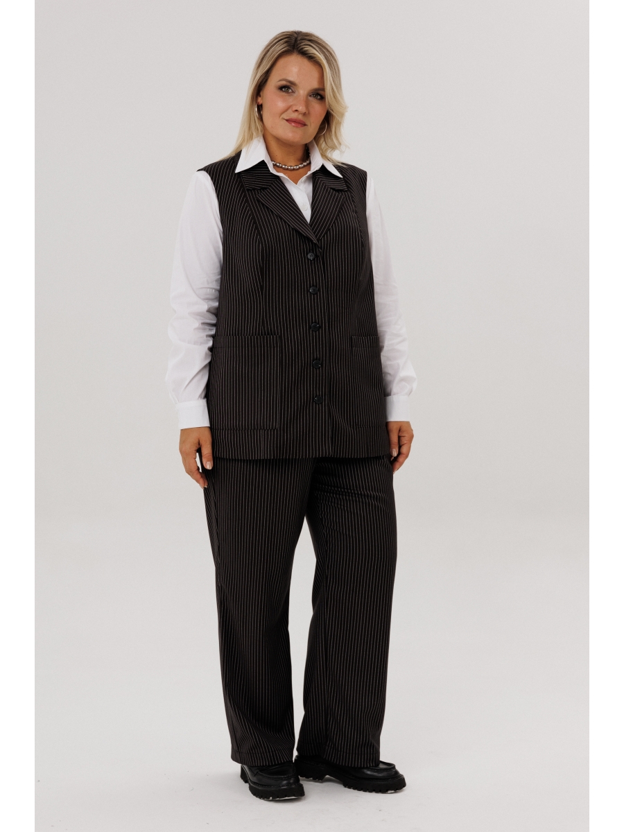 Комплект в мелкую черно-белую полоску состоит из жилета и брюк.